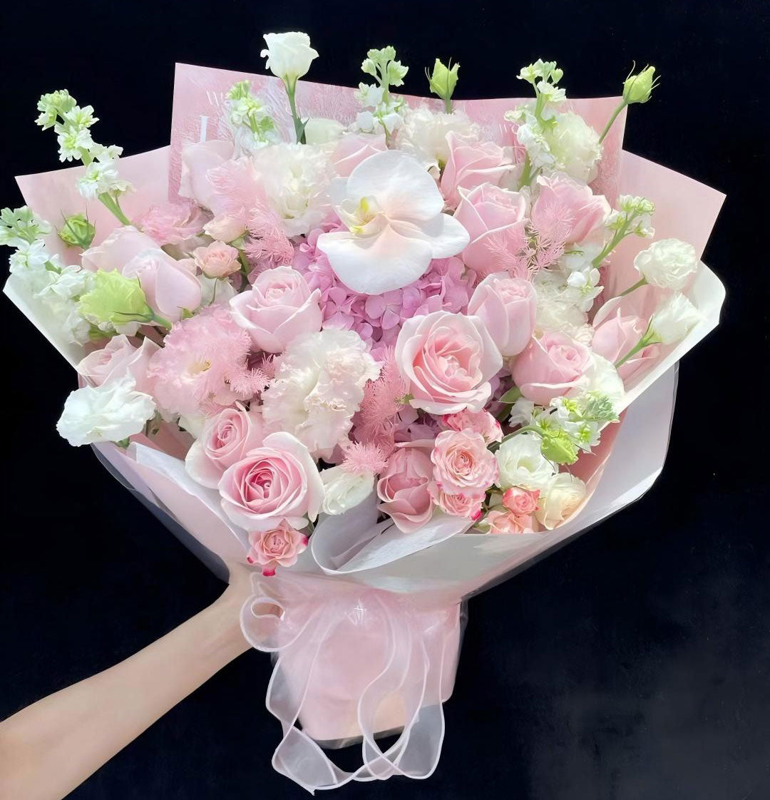 「我們網站上的圖片僅供參考。實際產品可能與圖片有所不同,因為花卉會因季節、包裝和攝影方法的不同而有所變化。在確保保持相同價值和風格的情況下,如果某些花卉短缺,安排也可能會有所變動。在下訂單時,我們認為您已經閱讀並接受了上述條款和條件。如有特別需求或者喜好,請備註或者直接告知店裡,以更方便的調整達到您心目中樣子,謝謝。」